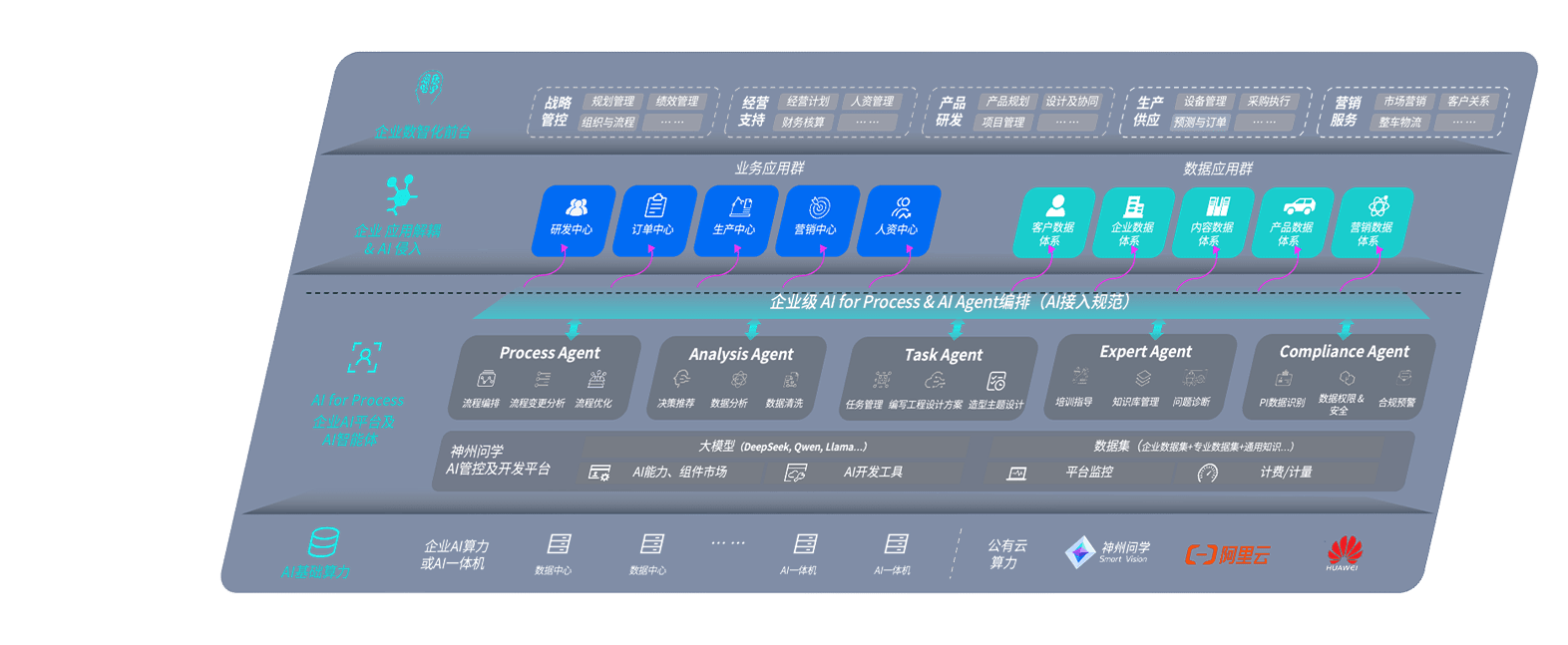 君临国际问学智车解决方案是一套基于AI技术的汽车行业智能化系统,,覆盖从底层算力到顶层AI应用的全栈方案。。方案由算力层、、、、模型层和应用层组成:算力层,,,方案支持多种一体机配置,,,,具备云端灵活部署、、、多云适配以及动态优化计算资源的能力;模型层,,君临国际问学平台版提供了企业级AI应用一站式构建与管理平台,,支持基于后训练强化技术的汽车企业专属模型的训练、、、、评测和运营;应用层,,,,君临国际问学DeepSeek版提供包括超级员工、、、、智能招采、、、智能营销、、、智能客服、、AI for BI等一系列解决方案,,,,可助力汽车行业实现数字化转型,,,,让管理更智能、、、响应更敏捷。。。。